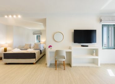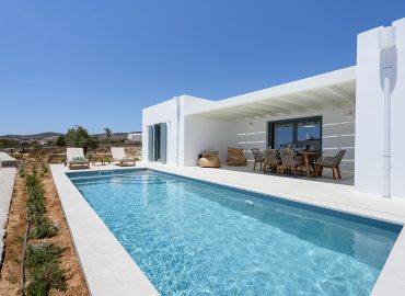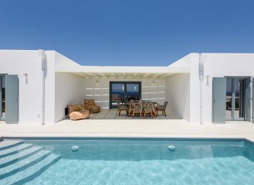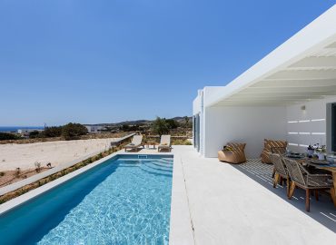 Spacious Villa White is one of the two newly built Villas (2022) of the “White & Rocks Villas” complex. With its Cycladic design and its modern colors, Villa White fits perfectly into the island landscape. Villa White consists of two (2) autonomous areas the main house and a studio, it has an overflowing pool and a captivating panoramic view of the Aegean Sea and the sunrises of Paros. Villa White can accommodate up to eight people. Villa White can be booked in combination with Villa Rocks